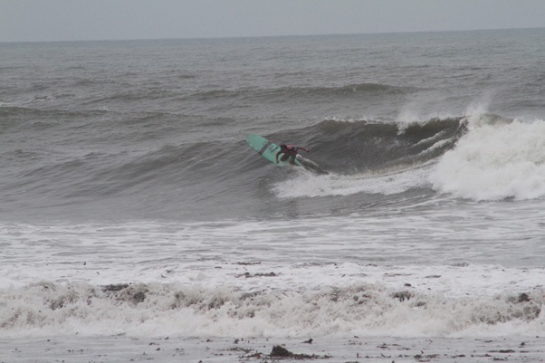 太東をホームとする岡澤紫穂選手は、持ち前の女性らしいきれいなノーズライディングを決め、3連続優勝を納める吉川広夏選手は安定感がありつつ、スピードのあるノーズライディングを決めていた。ノーズを武器とする二人の対決は吉川広夏選手に軍配が上がりました。