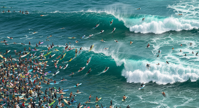 波の質や季節パターンの変化で、大会日程の安定した設定が難しくなる。