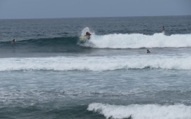 ここは、一定ではないものの、サンドバーの上で強烈なブレイクがあり、入っている人は物凄いアクションやチューブライドを連発していました。ただ、ポイントブレイクではないので乗れるチャンスがあり、そこまでビビることもありませんでした。
