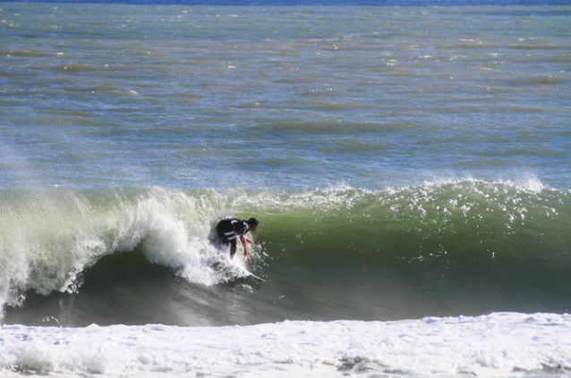 絶妙なタイミングでの軸のぶれない綺麗なスーパーレイト・テイクオフから、そのままチューブに突入していくという超高度なスキルを要求される貴重なシークエンスとなっております。