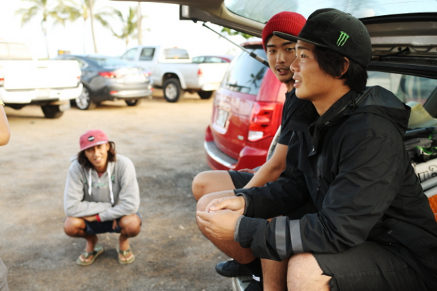 大原洋人がASP PRIME”REEF HAWAIIAN PRO”に出場するためオートネのエントリー確認を行なう大橋海人、新井洋人と共に早朝から開場となるハレイワへ。