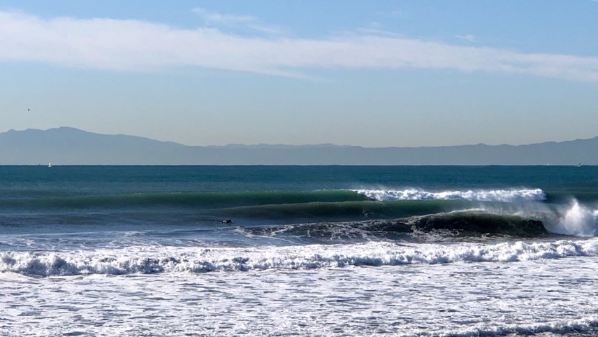 1月8日、湘南では、日本海の前線を伴った発達した低気圧の影響で南~南西寄りのうねりがサイズアップしました。