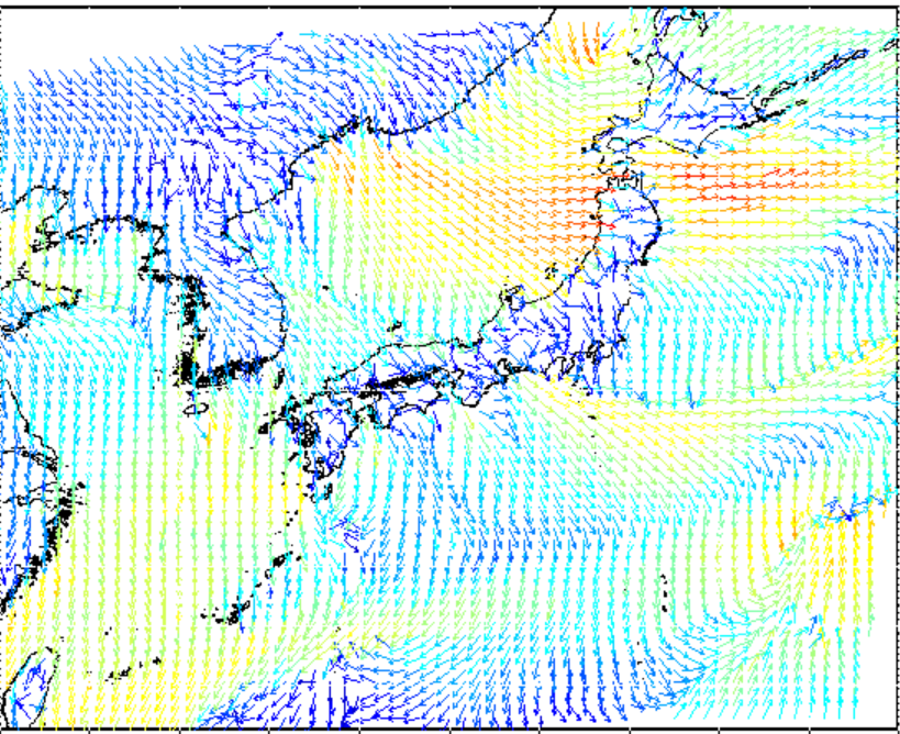 そんなJPCZですが、日本海側にグッドウェーブをもたらすこともあります。冬期の日本海側は、西高東低の冬型の気圧配置によって北西寄りの風波が強まって大荒れとなり、西高東低の冬型の気圧配置が緩んで風波が落ち着きながらまとまるというのを繰り替えします。冬期の日本海側の良い波を当てる基本は、西高東低の冬型の気圧配置が強まり、西高東低の冬型の気圧配置が緩んで風が弱まって風波が落ち着き始めたころを狙う、というのが基本となります。ただし、このJPCZが発生すると、多くの所は西高東低の冬型の気圧配置によって北西寄りの風波が強いものの、弱い低気圧によって一部では限定的にオフショアとなっていて、波が整っている、なんていうことがあります。冬の日本海側で良い波を当てるなら、「西高東低の冬型の気圧配置が緩む時を狙う」+「JPCZによりオフショアとなっている場所・時間帯を狙う」となります。