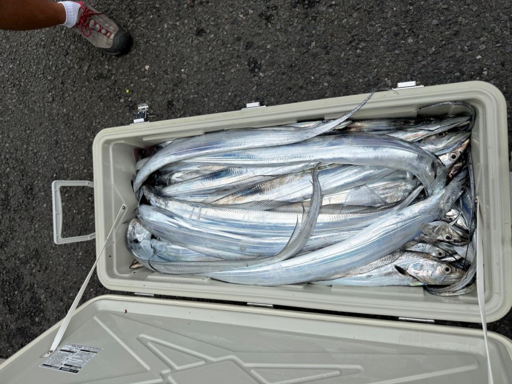 我々の大型クーラーボックスにまだ空きがあると知ったベテランの奥さまが、その後に釣れたタチウオを何本も我々のクーラーに入れて下さりました。