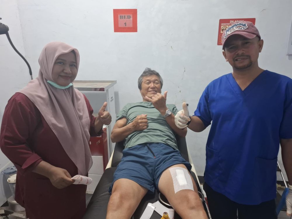 今年5月にインドネシアの某島で酷いぎっくり腰になって車椅子で緊急帰国したばかりなのに、リハビリを兼ねたスンバワ島滞在4日目に、ナンガスでオバケセットの波に巻かれた際にフィンが左太ももにグッサリと突き刺さり35針を縫う大ケガを負ってしまったのでした。