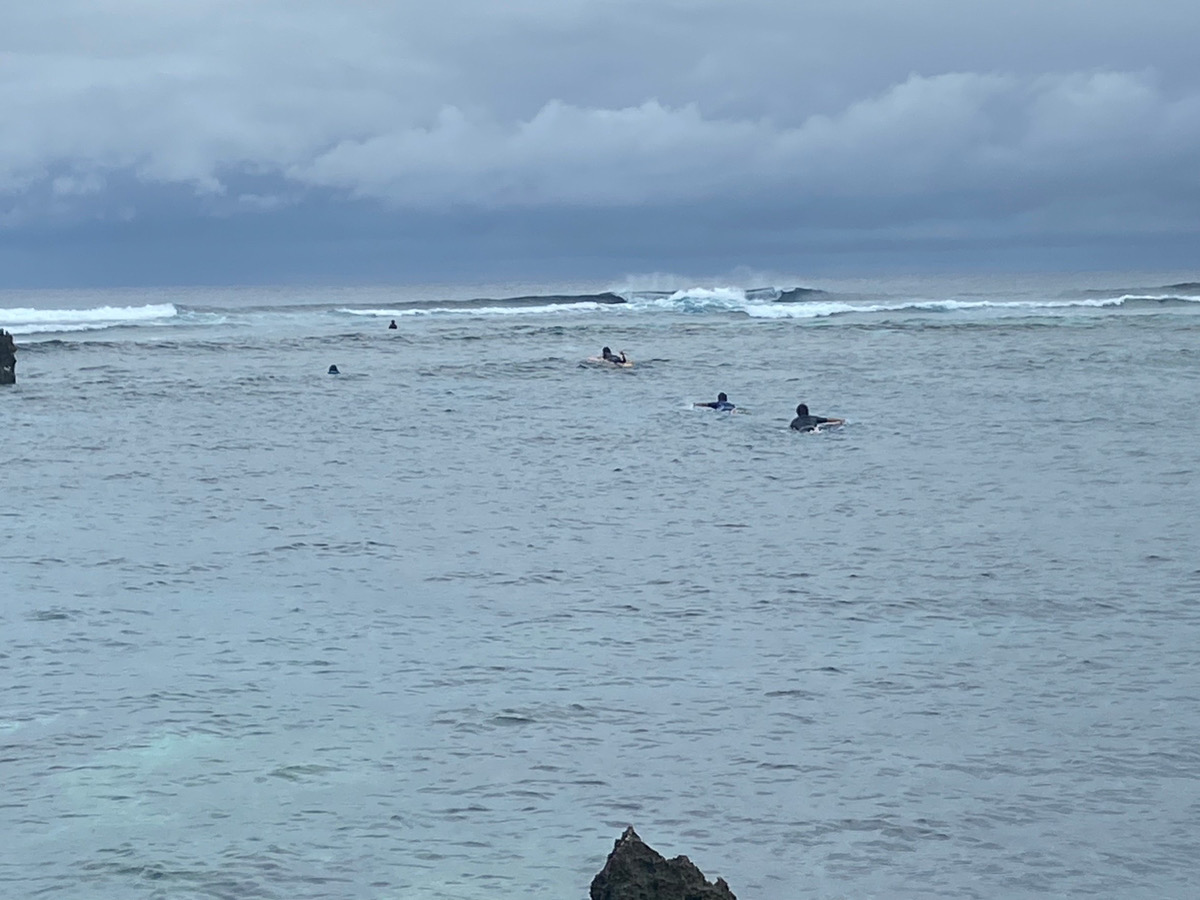 潮が上げすぎて海から岩場に上がるのが大変な時には、同じ時間帯に海からあがり、板を引き上げてくれたり、サンダルを渡してくれたり、自然と助け合っていました。本当に感謝です。