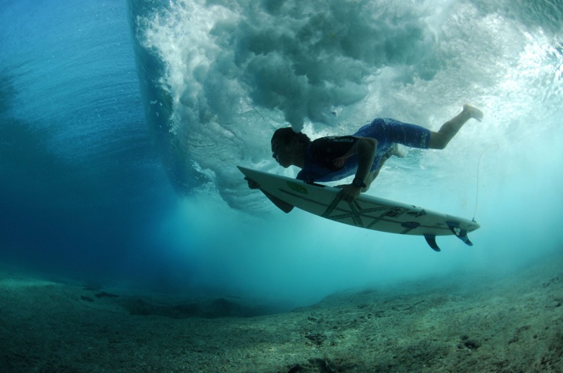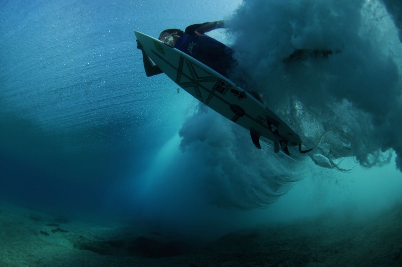 潜って上を見上げていると・・・サーファーのダウンザラインに・・・