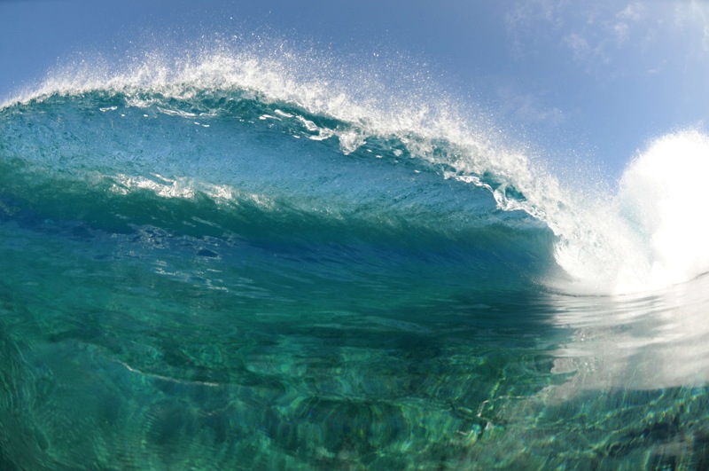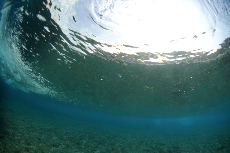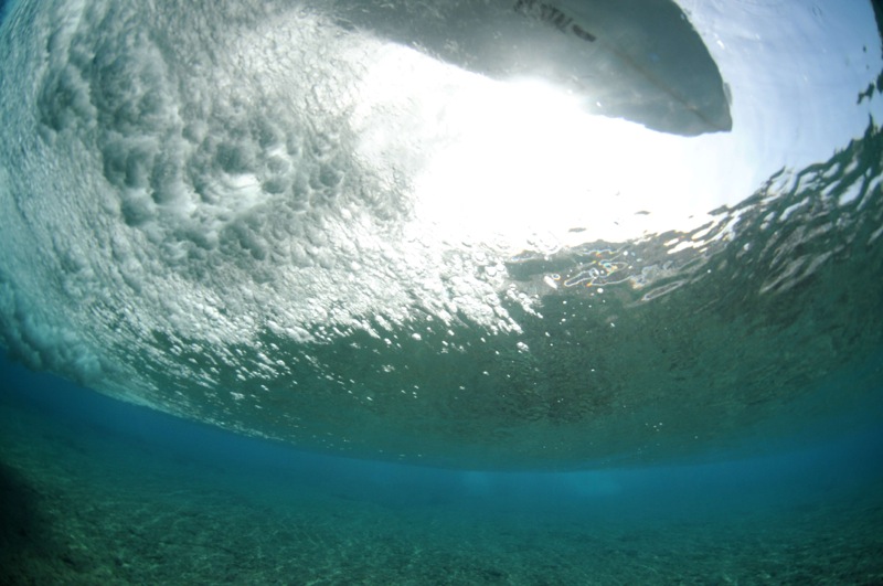 水中から見たブレイクする波・・・バレルになってるのが分かるかな?!・・・