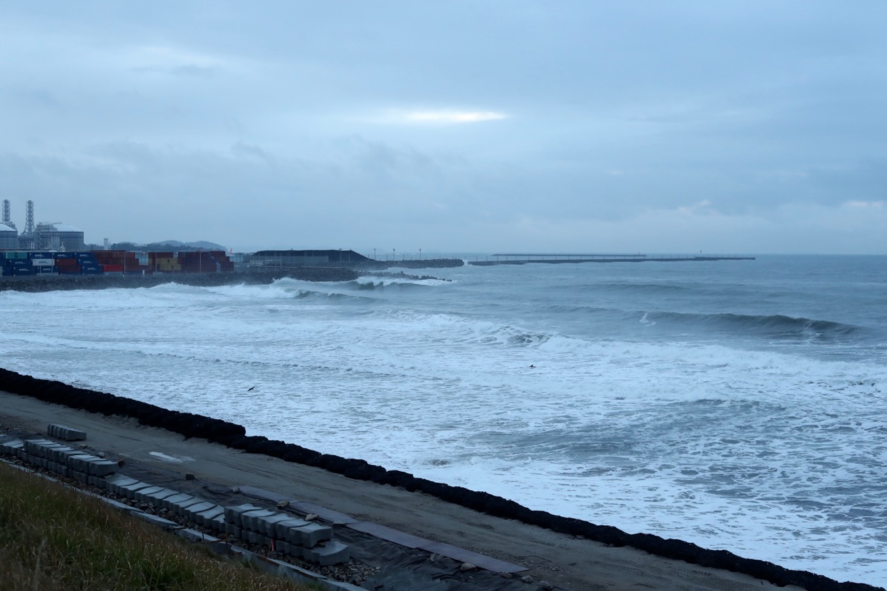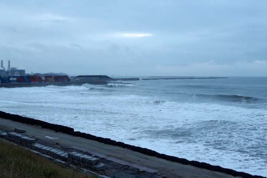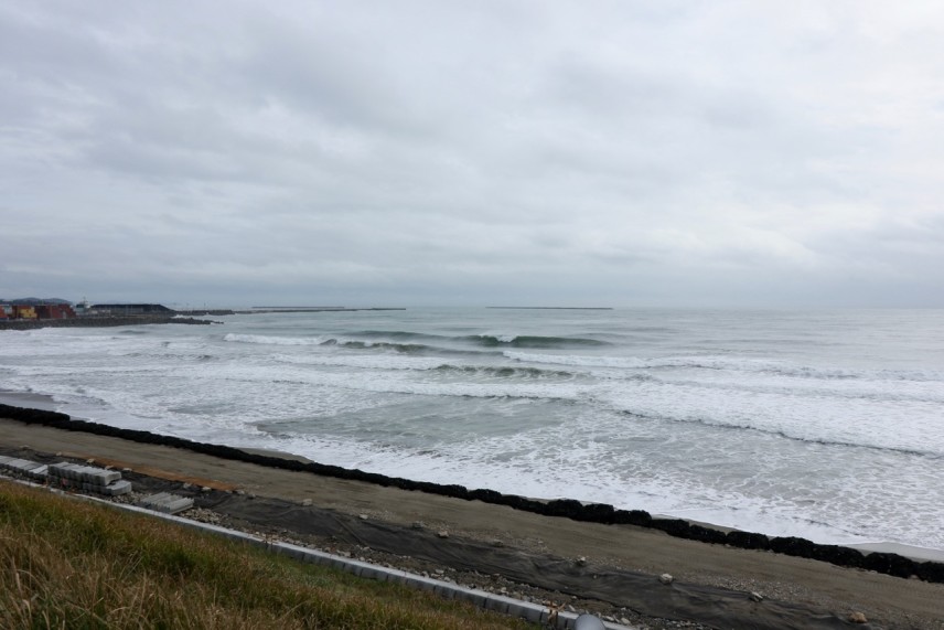 ゆるいオフショアの吹く、頭オーバー位のスタートとなった今朝の仙台新港。