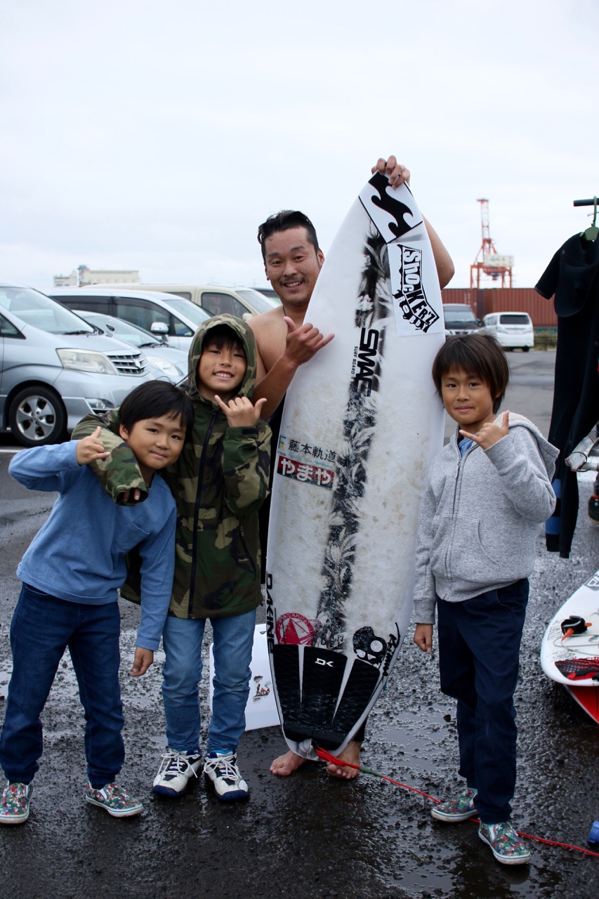 週末や夕方、キッズ達と一緒にサーフィンしている翼プロ。