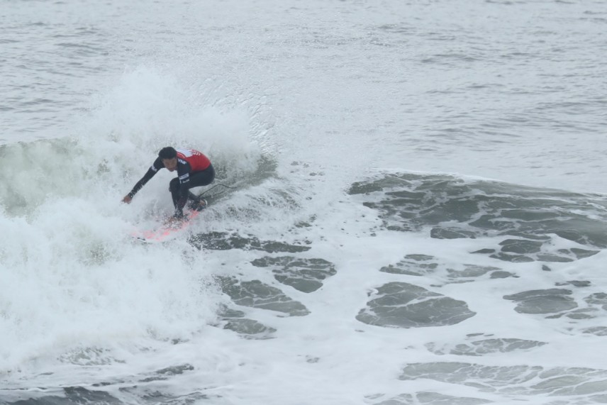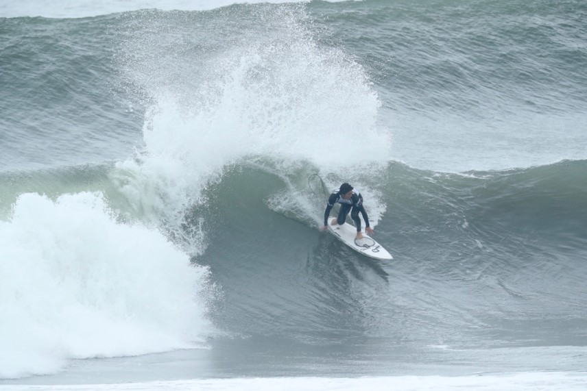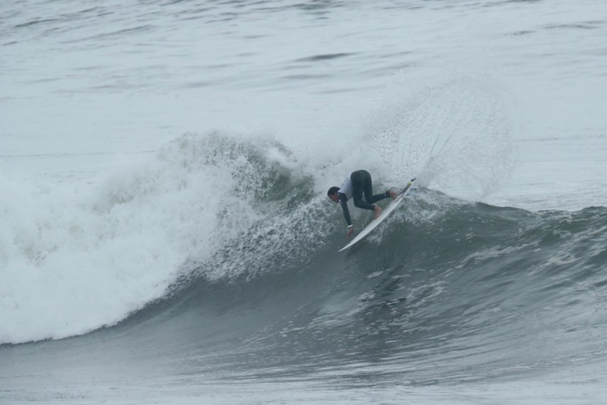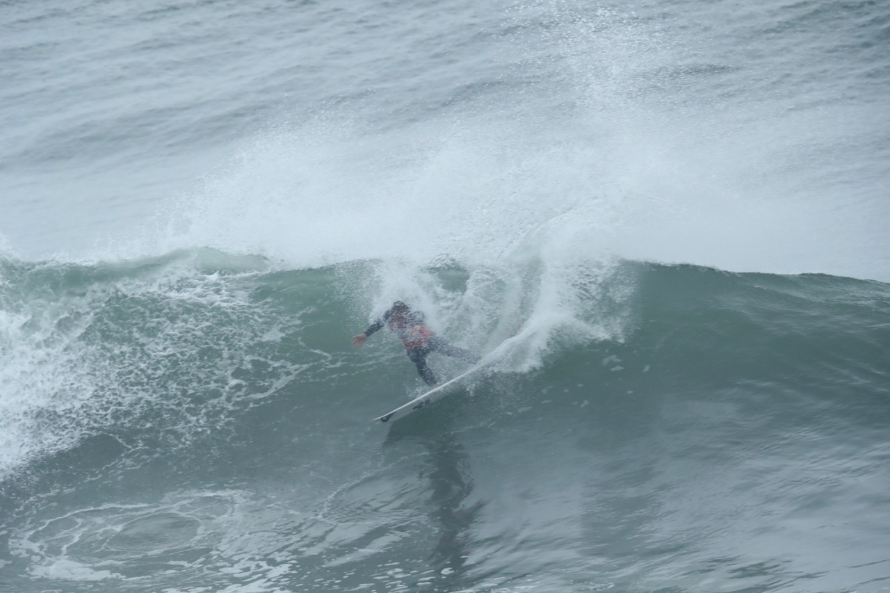 夜間、沖合で吹いたオンショアの影響で、オフショアなのに海面はややヨレ気味でした。