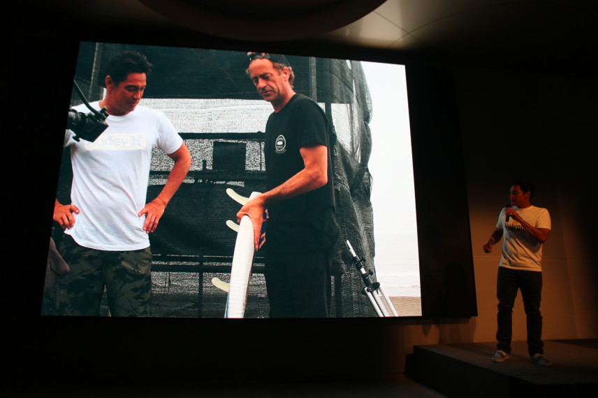 彼の生い立ちや、サーフィンに対する情熱、彼のスケッチやシェイプボードの紹介をおこなった。