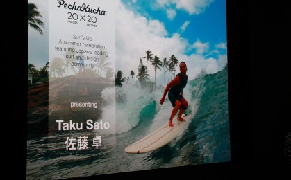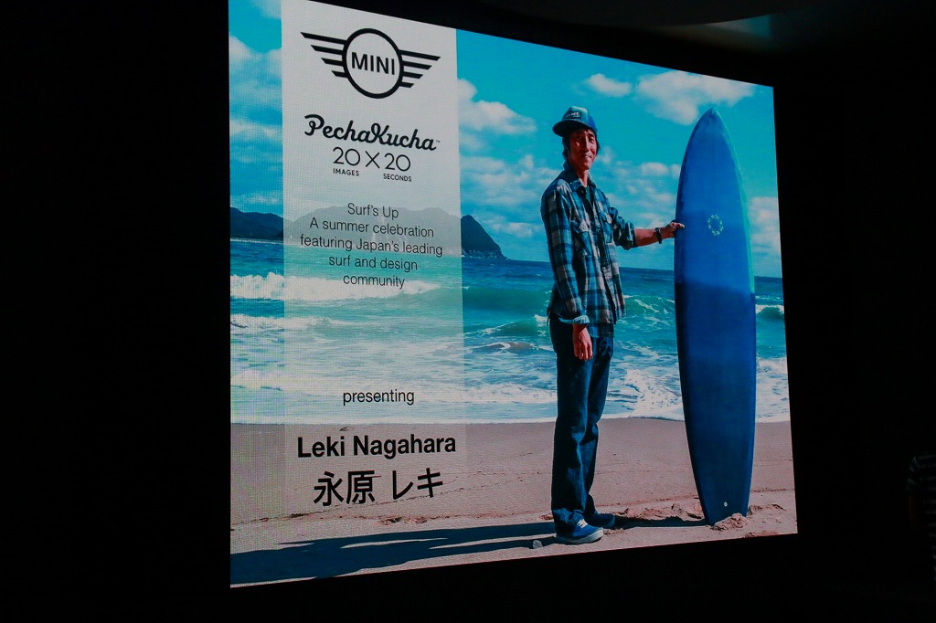 今回は『SURF x DESIGN』をテーマにしたこのスペシャルペチャクチャナイトとなり、各プレゼンターはそれぞれの生い立ちや、サーフィンに対する想い、海のすばらしさをプレゼンテーションした。