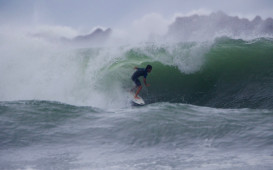 ハワイのある漁場で夕食の魚を捕獲するキミ・ワーナー/WSL / Justin Turkowski