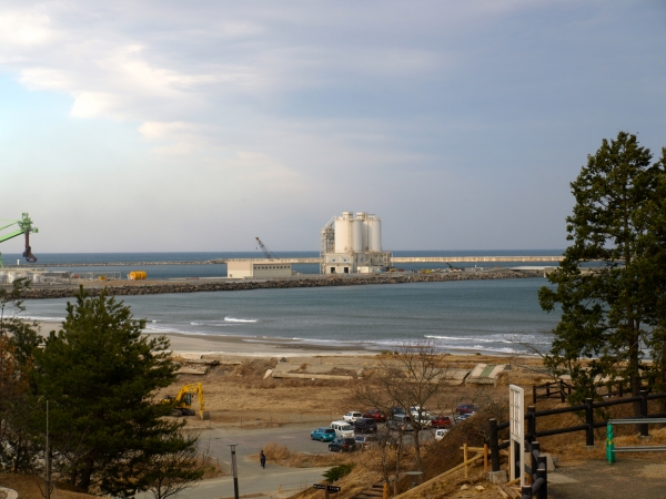 岩沢ポイントは今工事中。2年前から始まった本格的な海水浴場の復興工事で、工事期間は立ち入り禁止。震災後に沖合に風力発電が3基建設されて動いているんだけど、そのケーブルが海水浴場の砂の下に埋まっていて、重機が動かせなくて工事が止まっていたんだよね。3月31日に工期終了ってことだけど、海の日までにできるかなって思ってるよ。