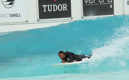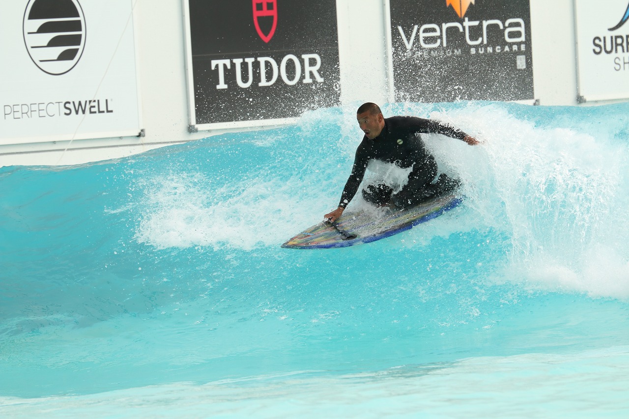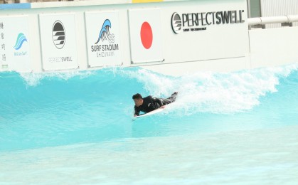 明日からの大会に出場するパラサーフィン世界チャンピオンの華麗なるチューブライディングも披露された!