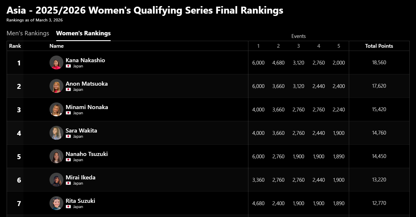 2025/2026アジア女子最終ランキング