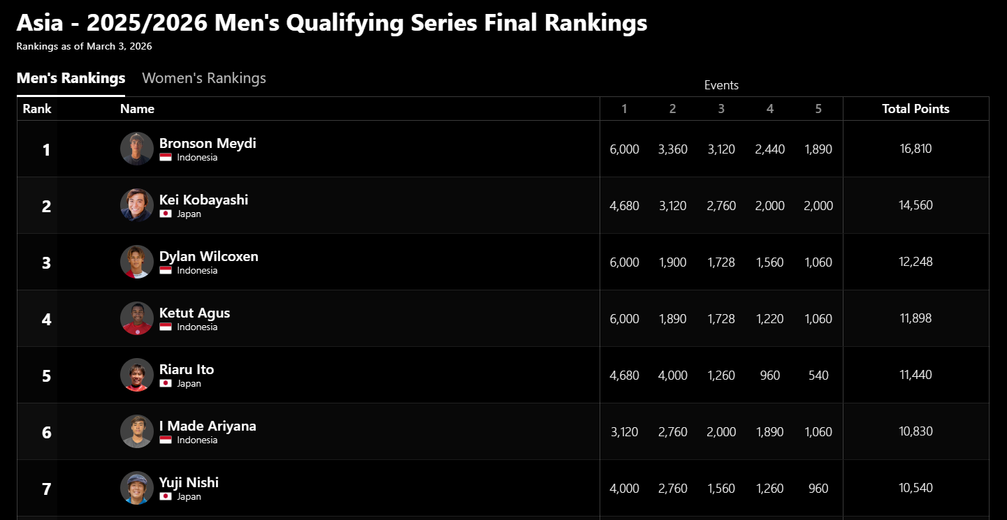 2025/2026 アジア男子最終ランキング