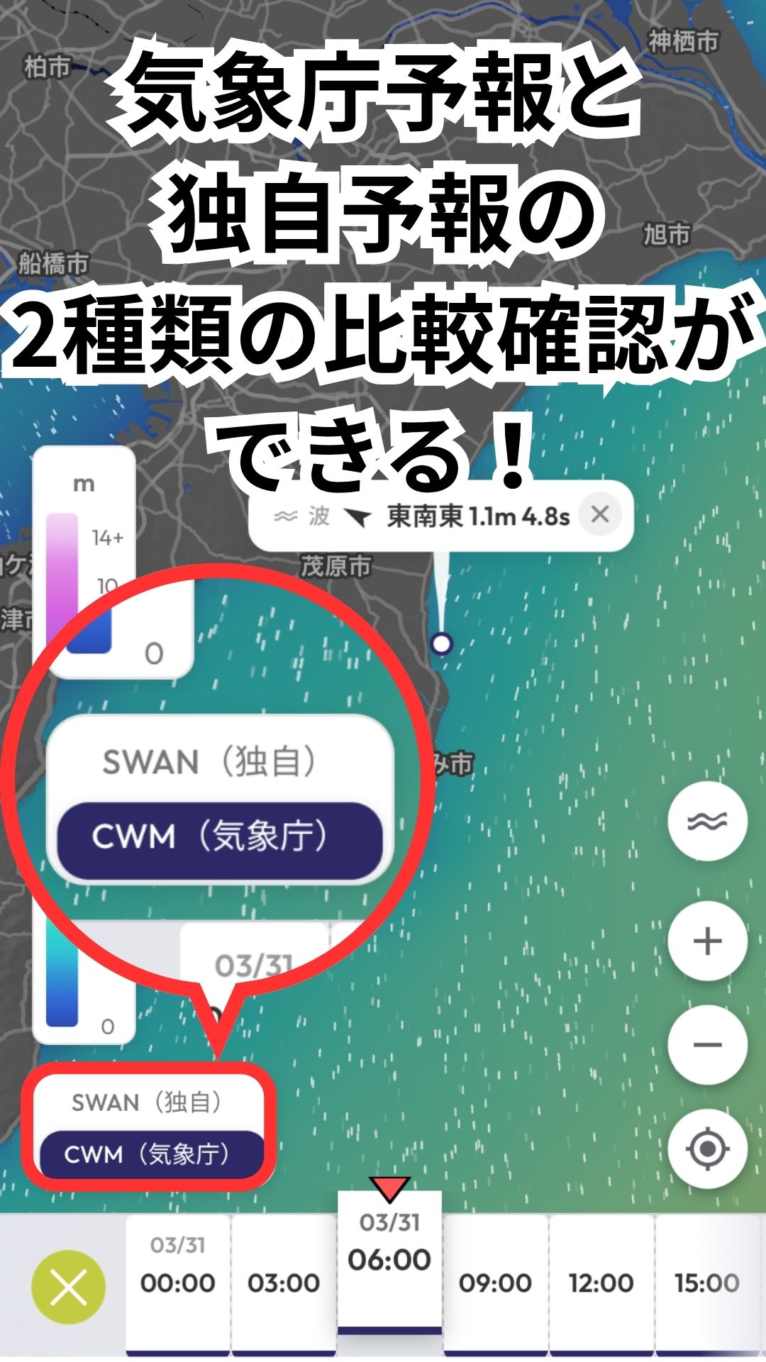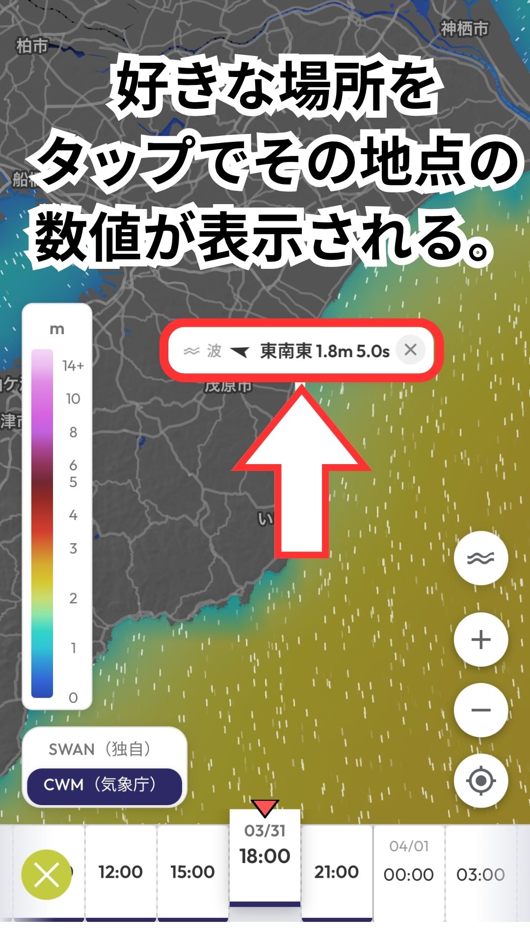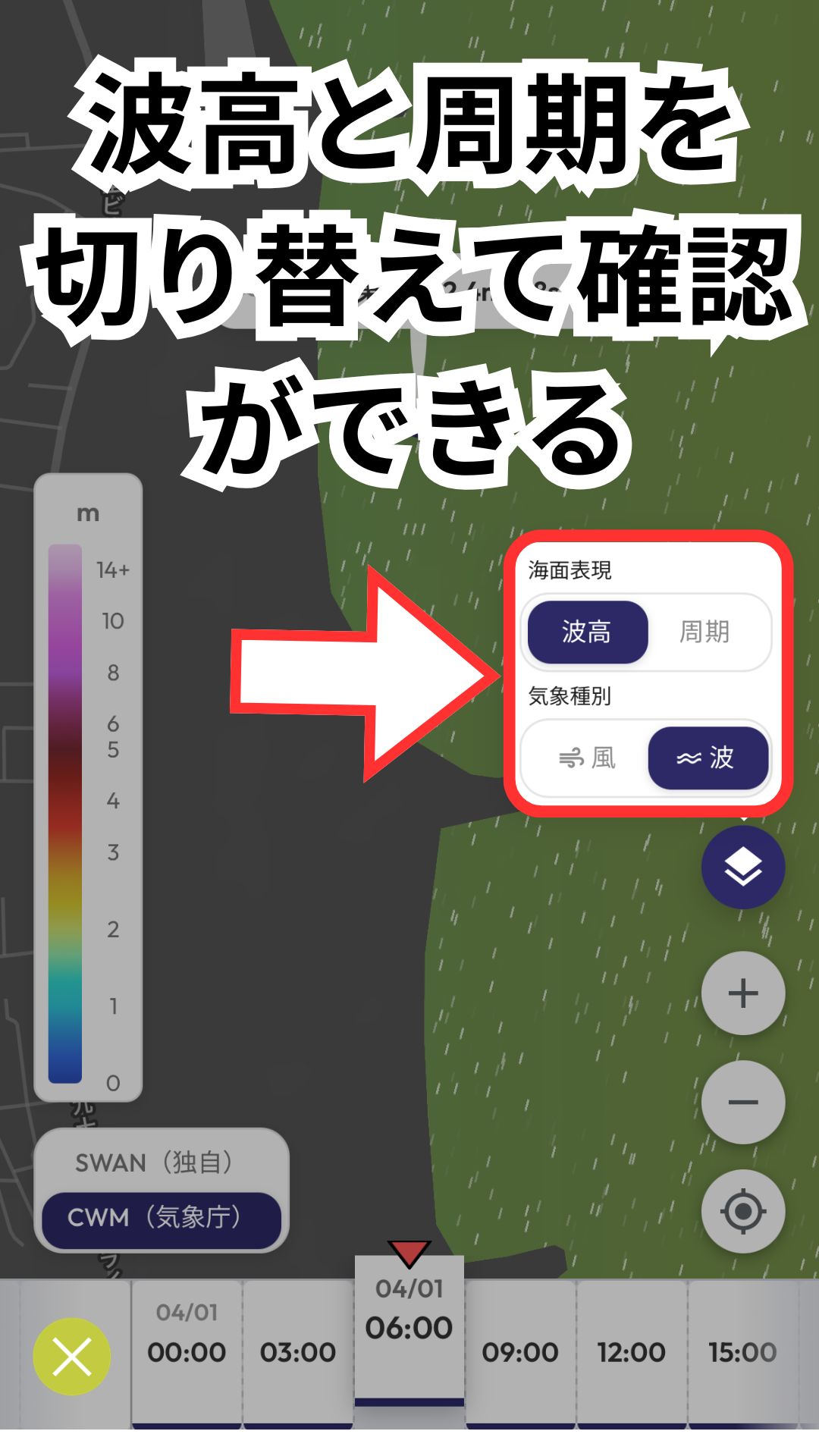 地図上で波の動きをダイレクトに把握できるようになります。