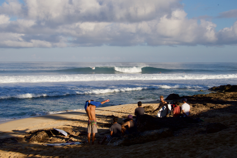 本日のノースショア、昨日と変わらず、3〜4〜、ノース気味のスエル。