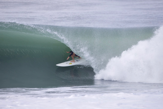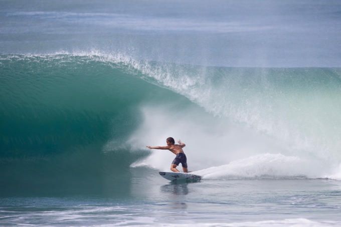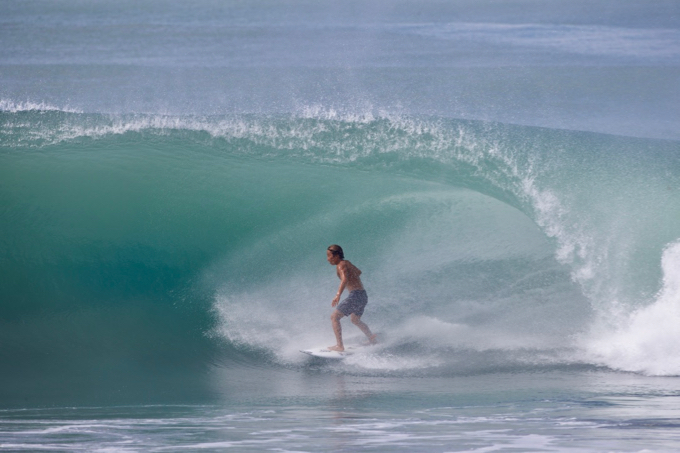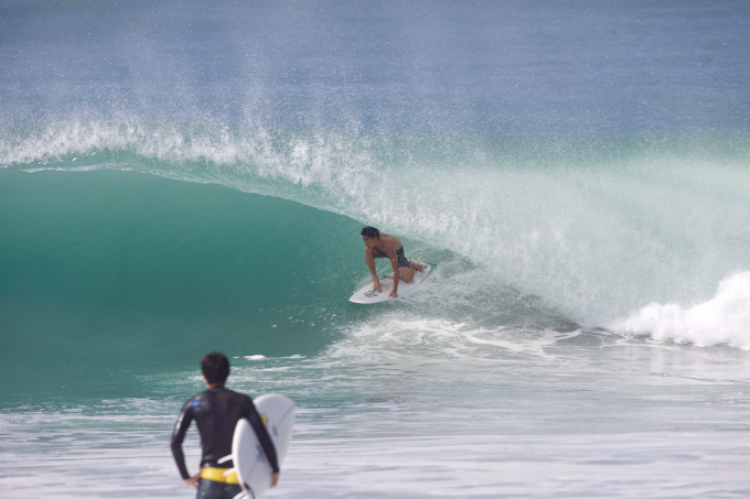 ショルダーに見えるサーファーによって、この波のサイズがわかると思うが、