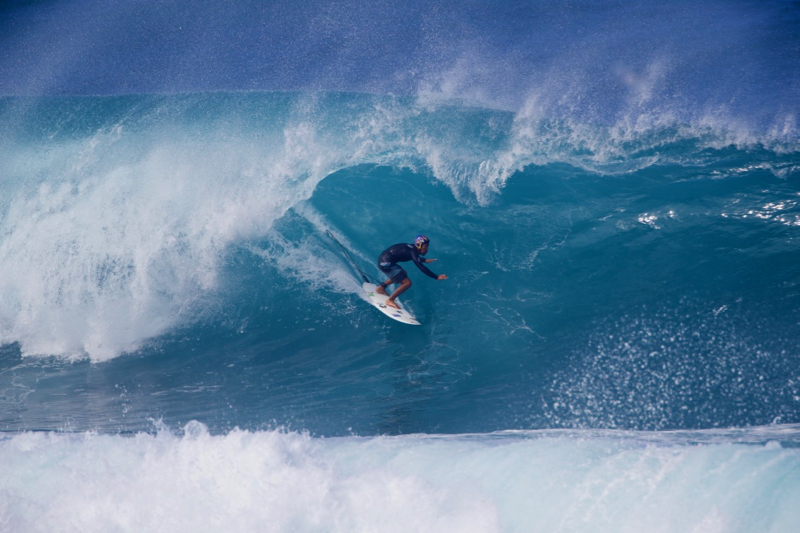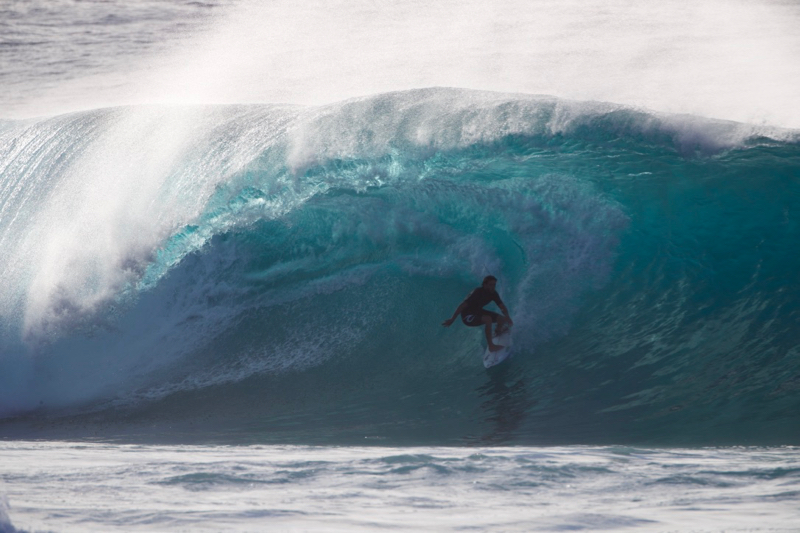 ピッキピキのバックドアにチャージ、ギリギリのボトムターンからプルインして行った。