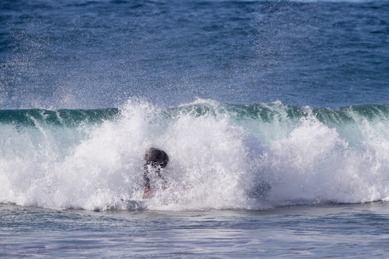 波もサイズダウンし、早めにオンショアが来ちまった〜