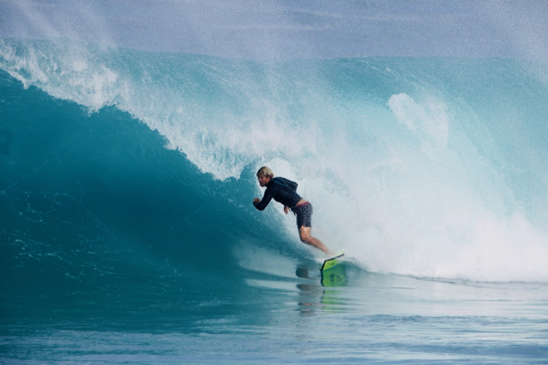 モーニングセッションではパイプでサクサクっと良い波を乗って、