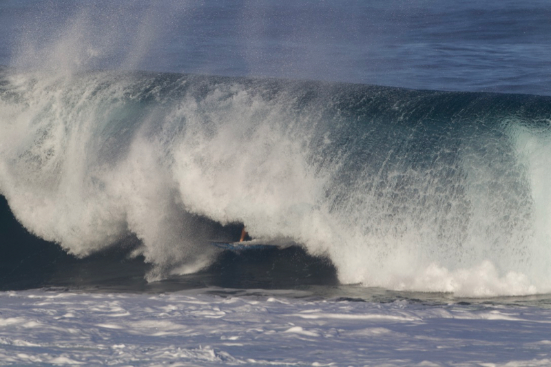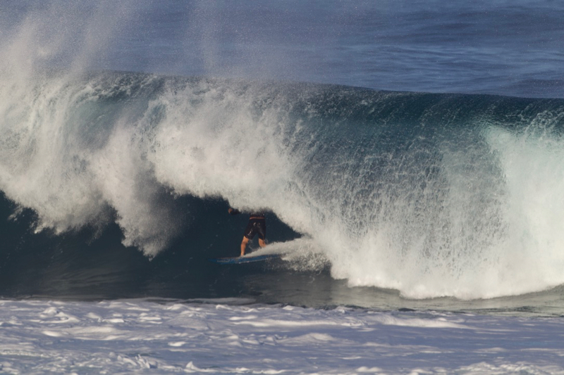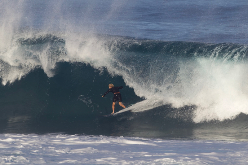 その後ジョンジョンは風が入り出してきた午前11時過ぎまでサーフし続けた〜