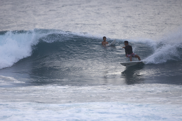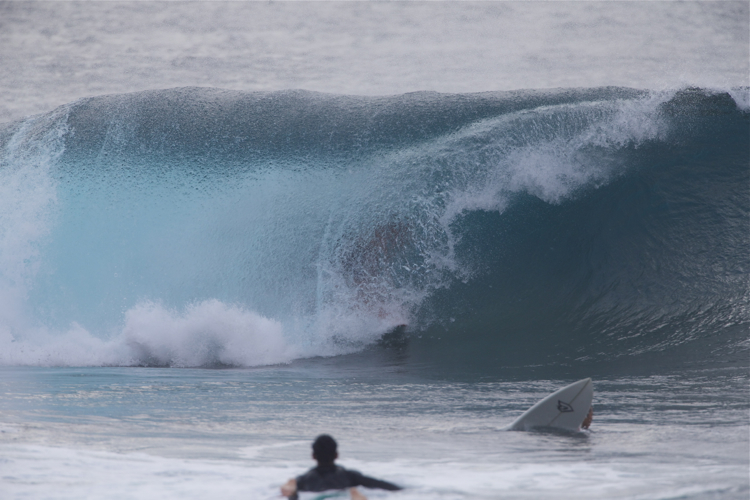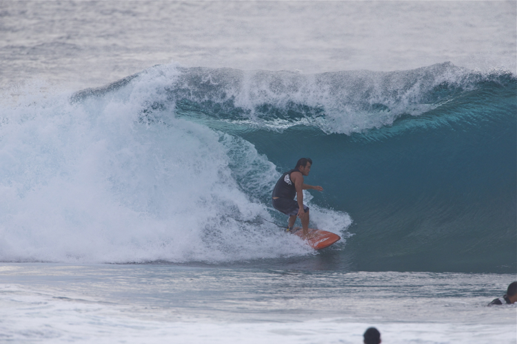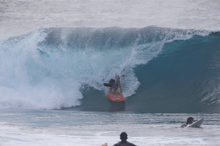リーフを読み切ったライン取りは流石で、ポッカリ開いたチューブセクションは逃さない。