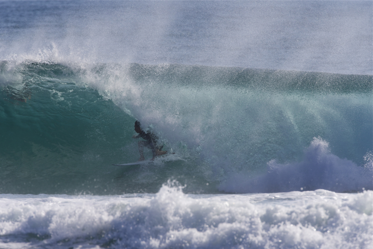 このめくれあがるようなディープピークから午後のウエイブオブザデイを捉えたケンタ。