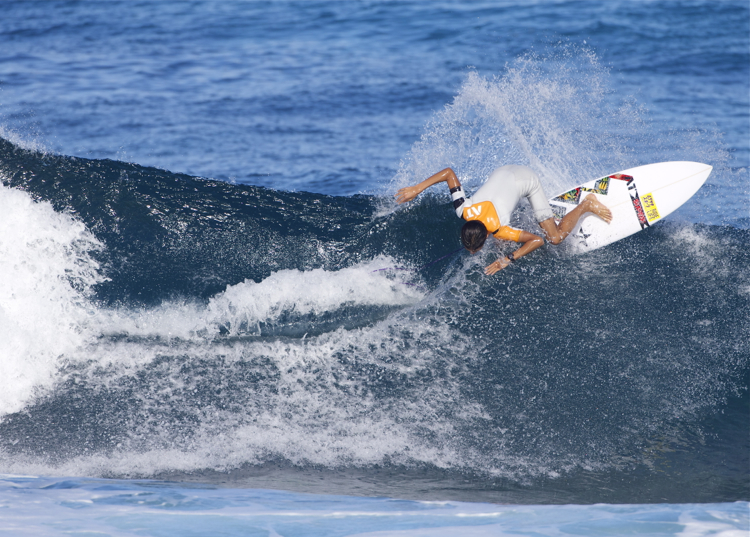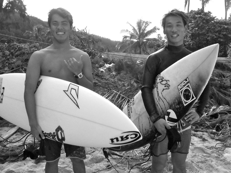 Got to North Shore with his mother and surfs very best in the line up every morning.