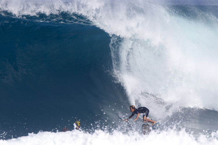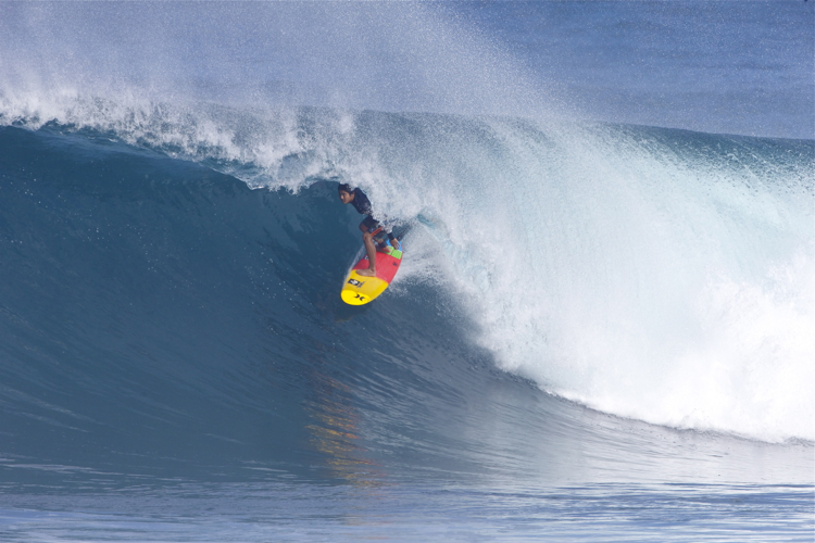 もう手がつけられないマックスオフザでなんとか手前の波をとらえたカイリ。