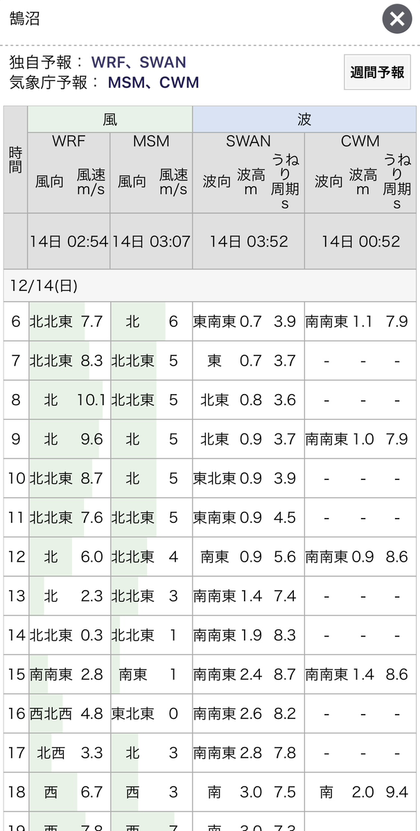 今回は、数値にバラつきはありましたが、独自予報(SWAN)と気象庁(CWM)が似ていた予報だっため、おおむねシナリオ通りとなりました。