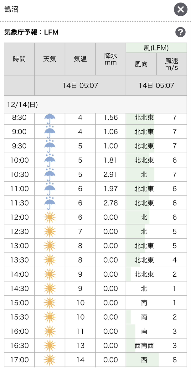 また、朝の時点のリアルタイム風予報がこちら。