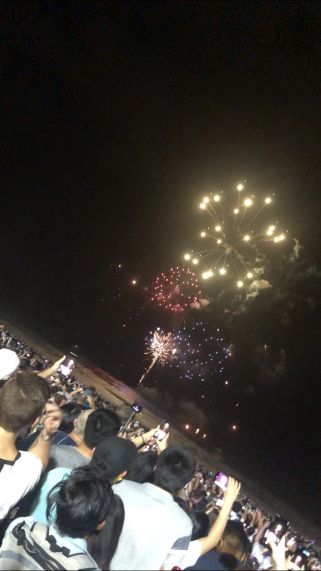 花火よりも、人の量にびっくり。ビーチに人があふれかえっておりました。