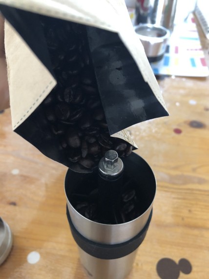 ②豆を挽く