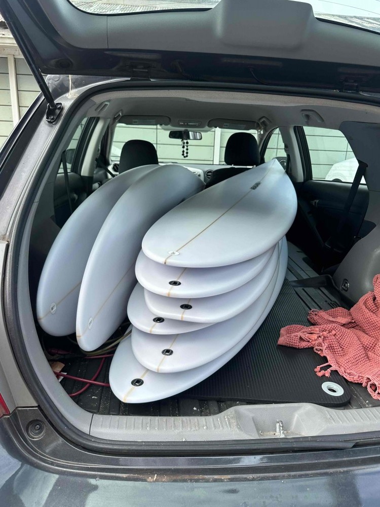 今回の試合に向けては、ARAKAWAサーフボードのニューボードを8本、現地ピックアップで準備しました。