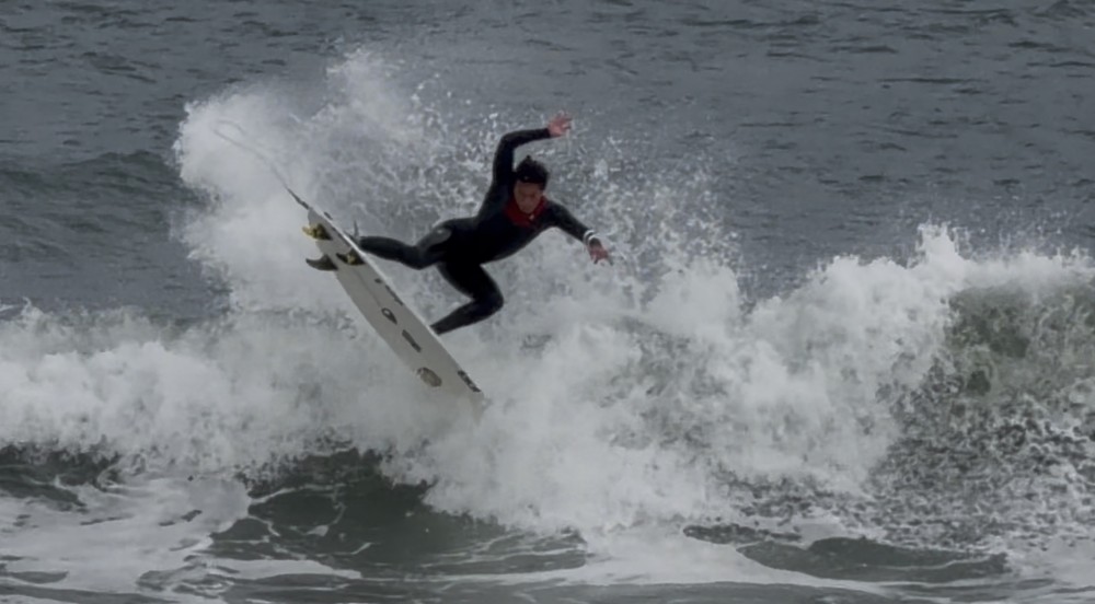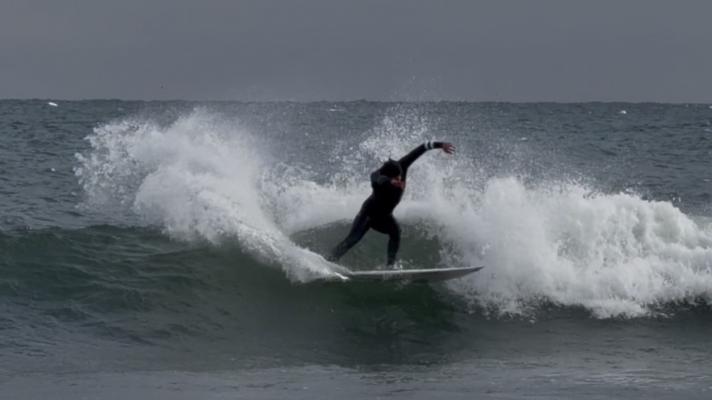 波を大きく使うサーフィンを意識していてカービングを得意としています。