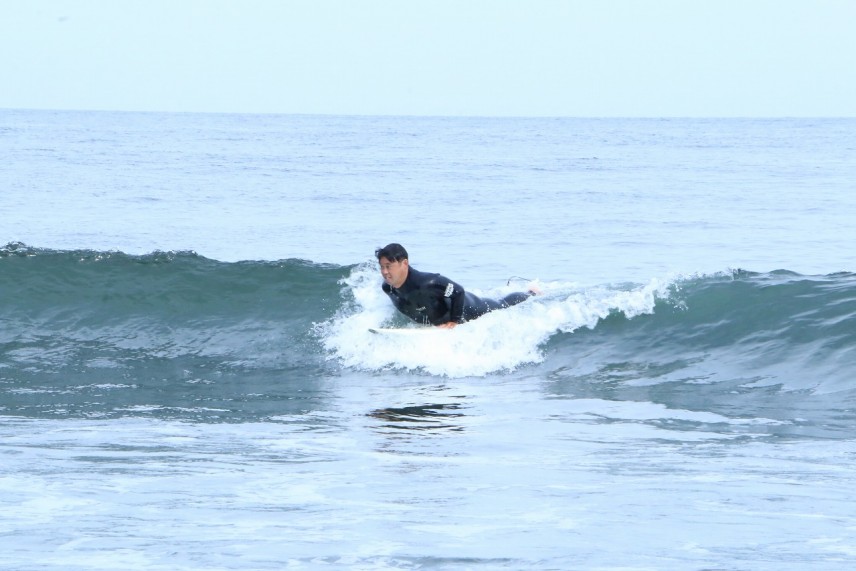 こんにちは!サーフィン歴は20年ほどで、普段はロングボードを楽しんでいますが、波が大きい時は浮力のあるファンボードに乗り換えます。