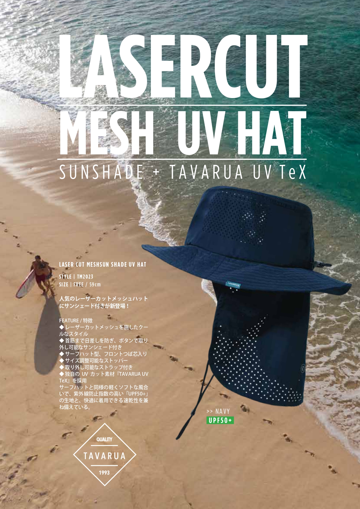 通気性・速乾性に優れたメッシュ構造に加え、「UPF50+」UVカット素材「TAVARUA UV TeX」を採用。