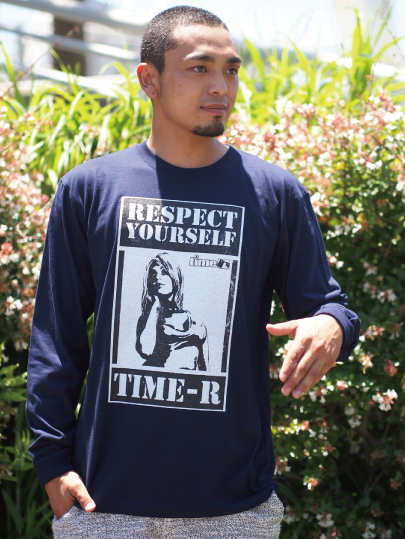 TIME-Rベーシックロゴの中に波柄プリントを配した定番モデル。5.6oz中厚生地の袖リブ付きロンT。