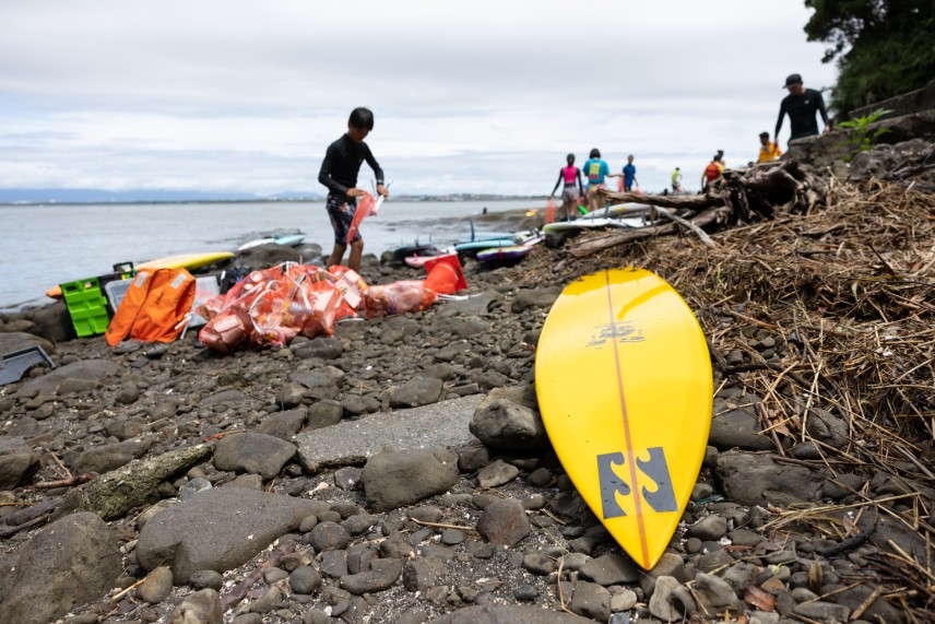 パドルボードやサーフボードを使わないと拾い集めることが困難なゴミを拾い清掃活動をおこないます。