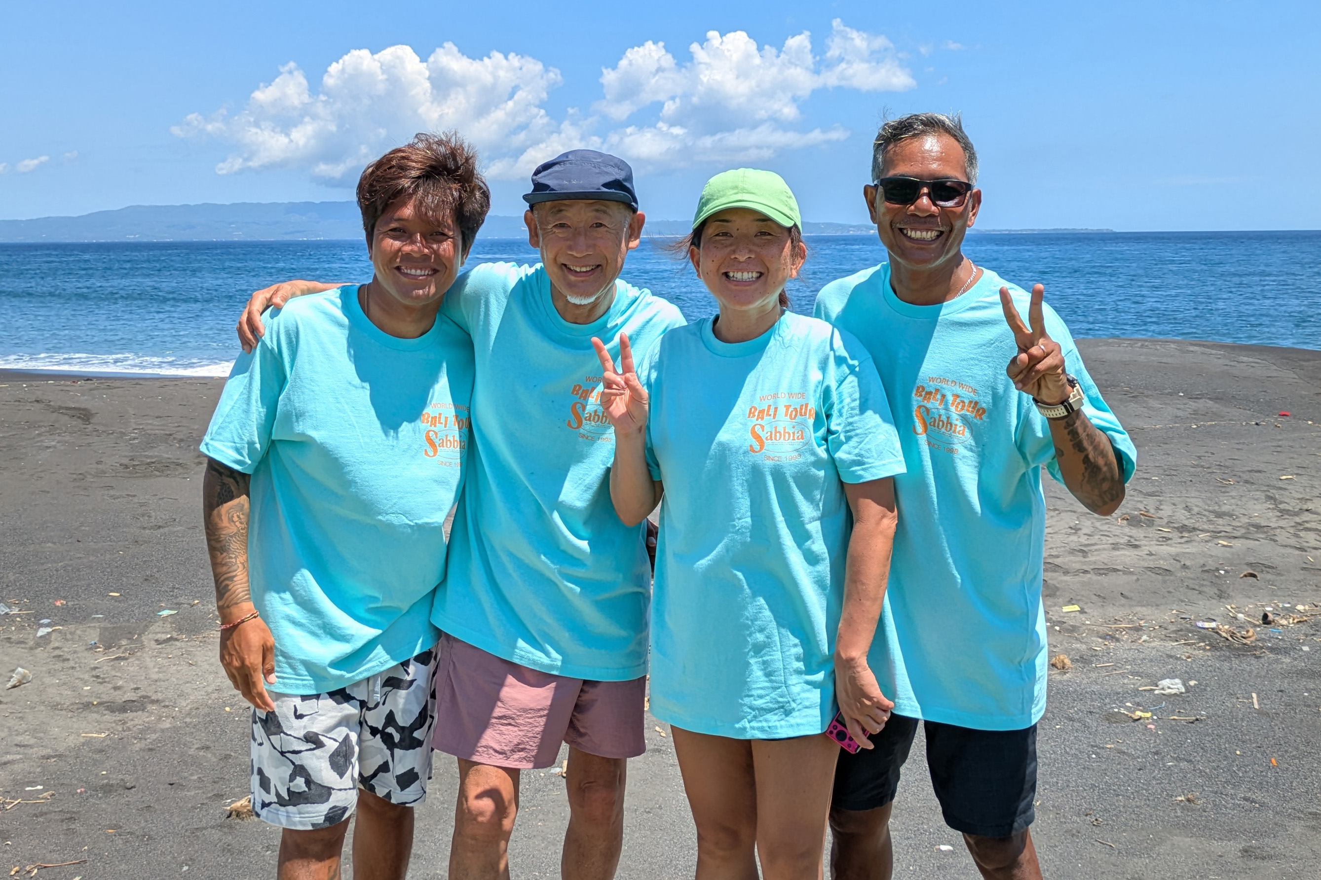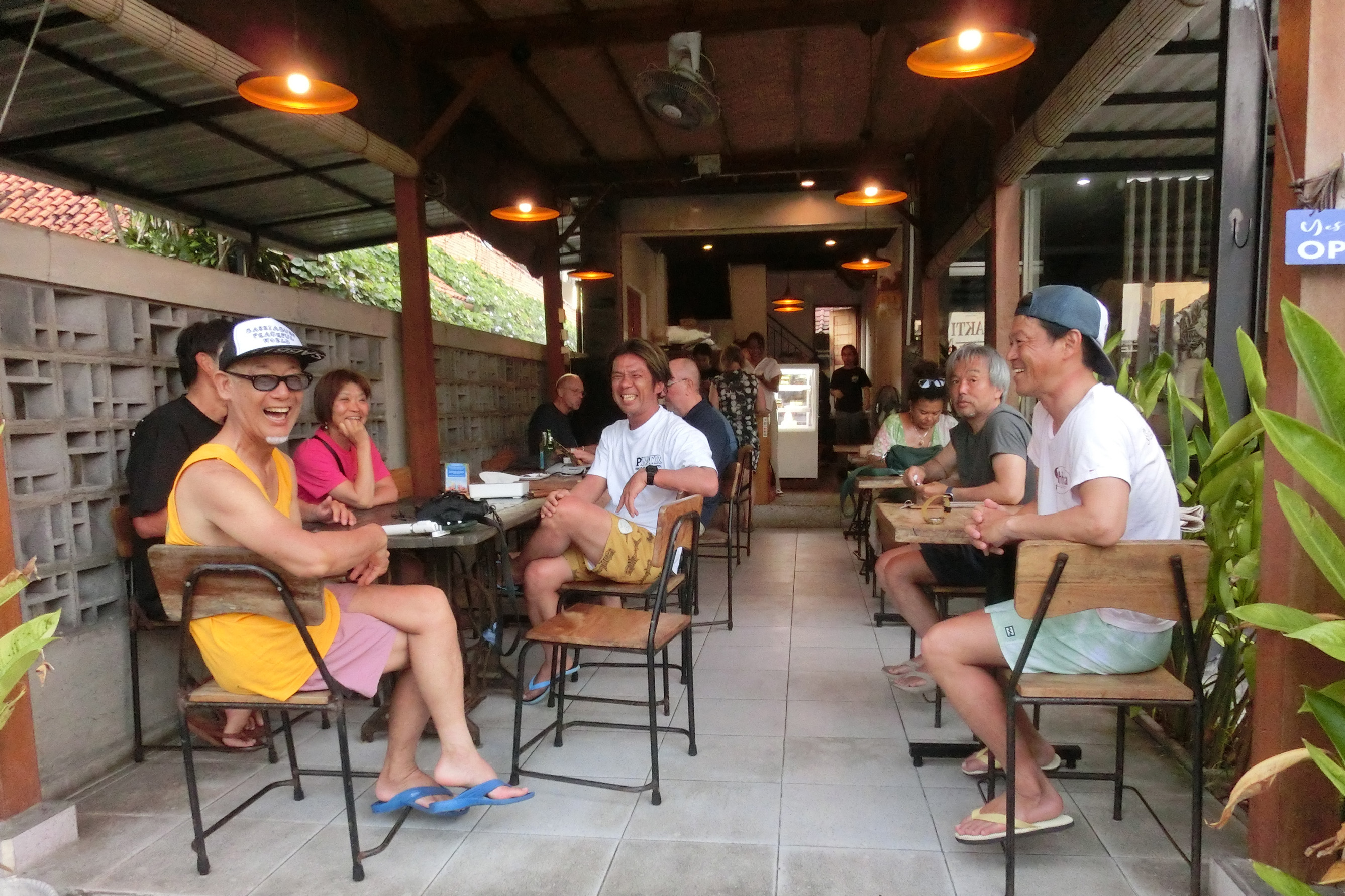 ツアー牽引者である代表・白波瀬(左から2番目)は、長年にわたり現地サーファーとのリレーションを築いてきた。「ツインフィンでどこまでできるか?」をテーマに生涯挑み続けるほど、バリ島とサーフィンへの情熱は深い。混雑の避けられないバリ島で、有意義にサーフィンできるのもSABBIAツアーだからこそ。