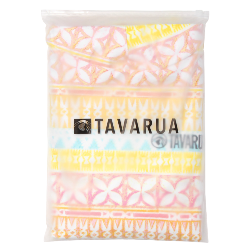 フィジーの民族柄にインスパイアされたトロピカルな配色。