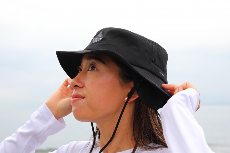 取り外し可能なあご紐付きでサーフィンはもちろん、SUPや冬のビーチアクティビティにもおすすめ。