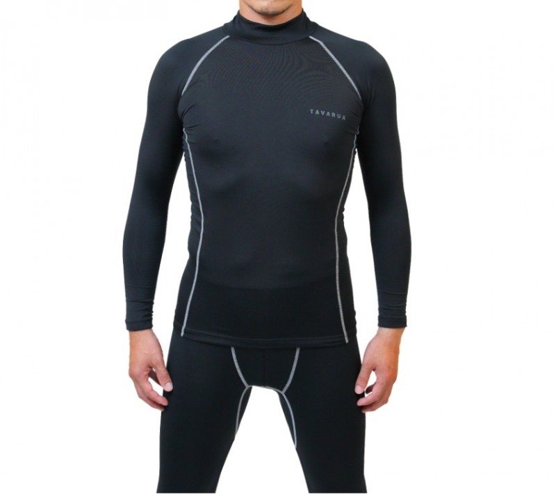 首元までしっかりカバーするハイネック仕様と、下半身の冷えを防ぐロングタイツは、真冬のサーフィンに欠かせない定番インナーです。