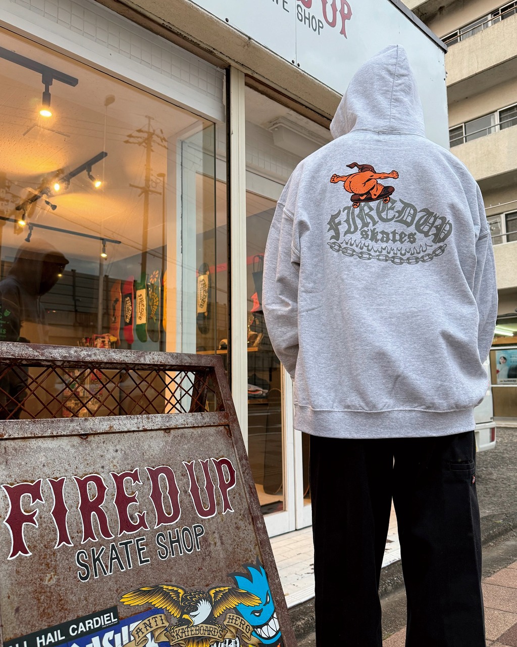 FIRED UP SKATESHOPのロゴと組み合わせた特別デザインで、コラボレーションならではの象徴的なビジュアルに仕上げました。