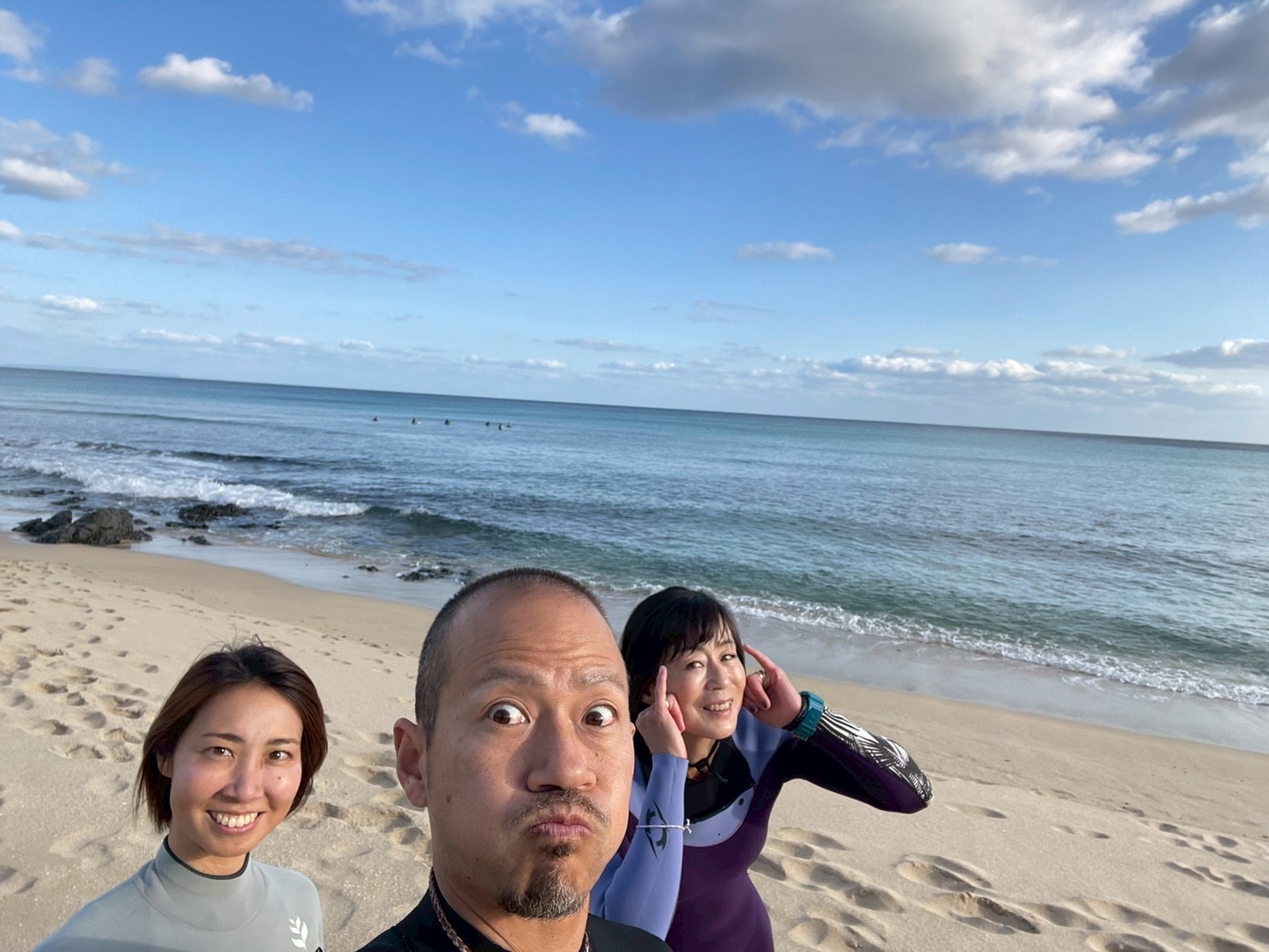 波は小さめでしたが、海水の透明度が高くとにかくきれい! 軽くサーフィンを楽しんだあと、シュノーケルで海を満喫しました。