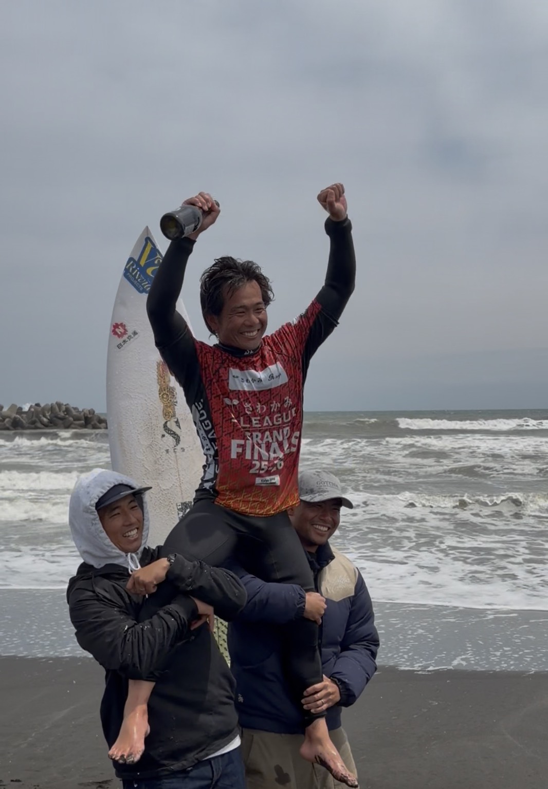 最終日のコンディションは北東風が強く吹き、胸~肩前後のジャンク。途中で波が消えやすい難しい状況のなかでも、各選手がレベルの高いライディングを披露しました。